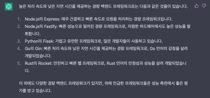 백엔드에서는 높은 처리 속도와 낮은 지연 시간이 되겠습니다.