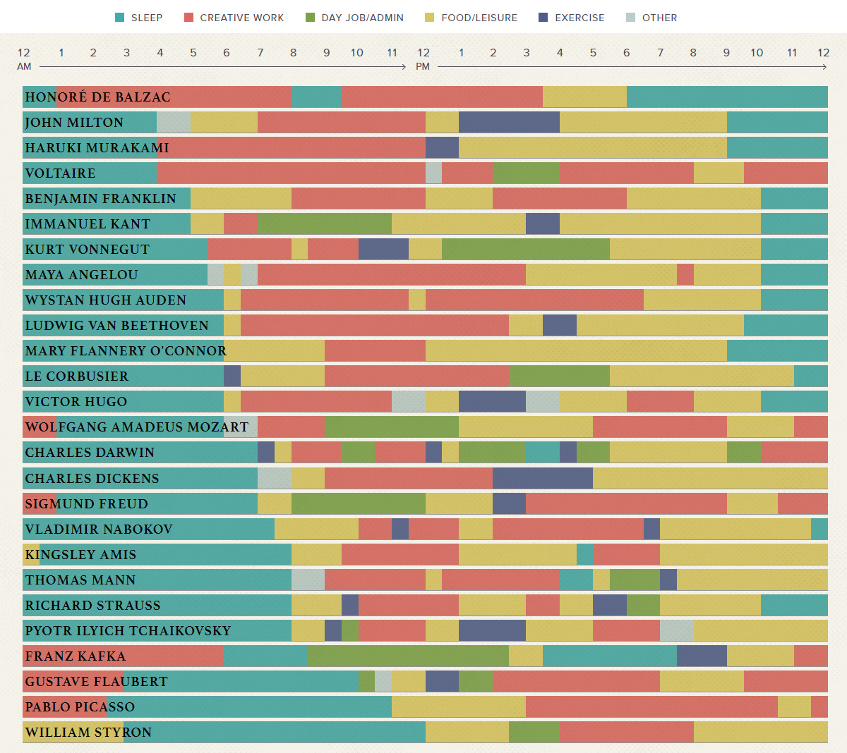 루틴 이미지 출처 : https://www.visualcapitalist.com/visualizing-the-daily-routines-of-famous-creative-people/