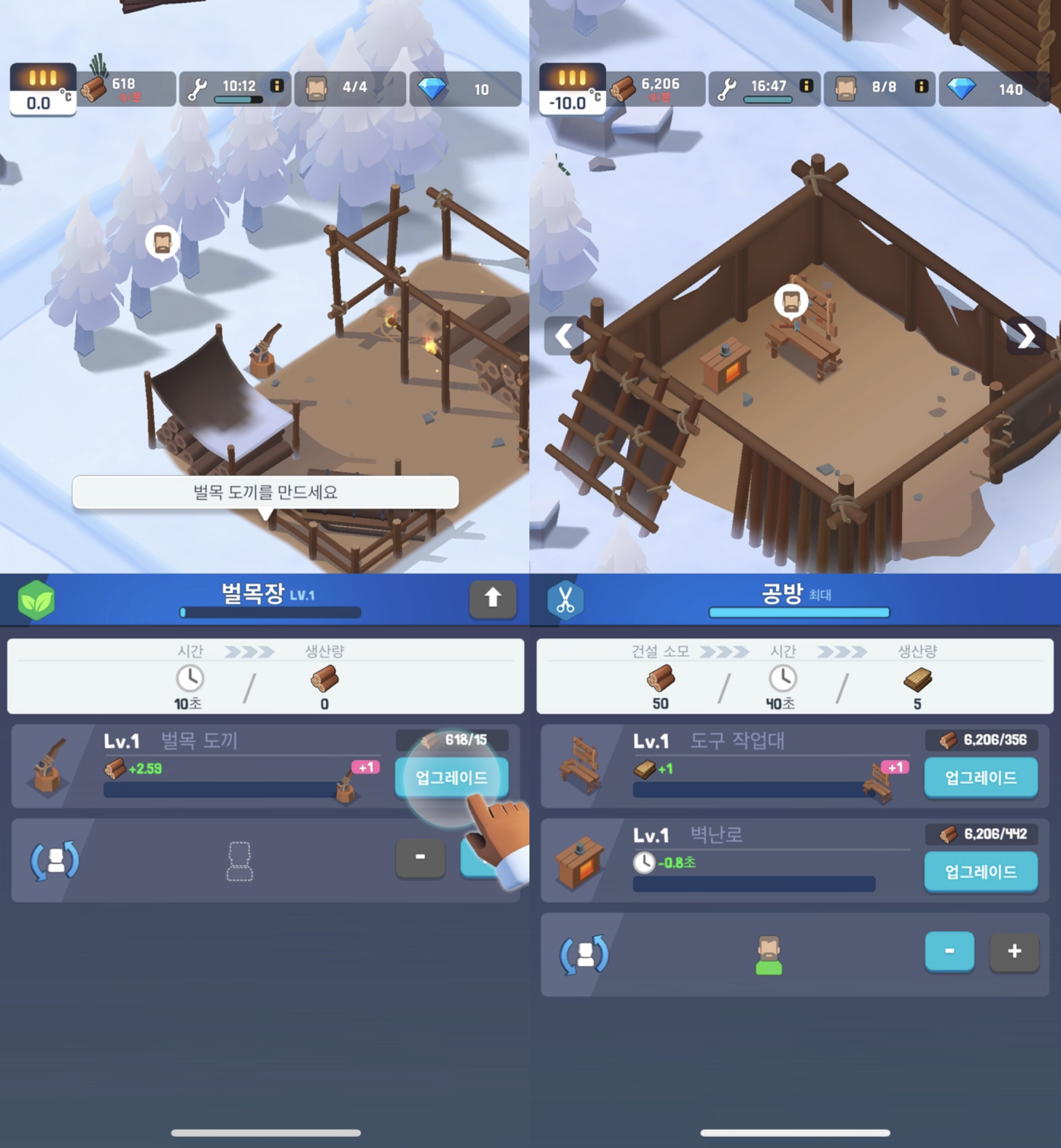 업그레이드를 통해 더 많은 목재를 생산할 수 있습니다.